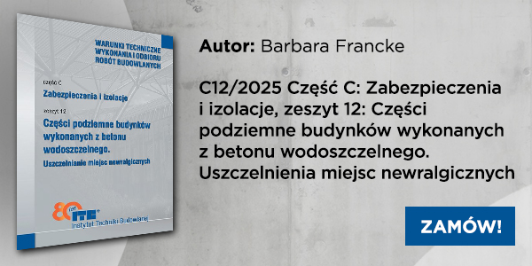 | | | | Części podziemne budynków wykonanych z betonu wodoszczelnego. Uszczelnienia miejsc newralgicznych | | | | | Skuteczne zabezpieczenie miejsc szczególnie narażonych na działanie wilgoci i wody w konstrukcjach podziemnych to jeden z kluczowych elementów trwałości i niezawodności obiektu. Szczelność płyt dennych oraz ścian piwnic wymaga nie tylko odpowiedniej technologii betonu, ale również prawidłowo zaprojektowanych i wykonanych detali uszczelniających. Niniejsza publikacja przedstawia zbiór zaleceń wspomagających realizację tych celów. | | | | Opracowanie odnosi się do zasad wykonywania oraz odbioru uszczelnień w newralgicznych punktach konstrukcyjnych części podziemnych budynków i budowli, w których płyta denna i ściany piwnic wykonane zostały z betonu o klasie wodoszczelności minimum W8. Dokument ma na celu ujednolicenie podejścia projektowego i wykonawczego, zapewniając przejrzyste wytyczne techniczne dla wszystkich uczestników procesu budowlanego. | | | | | | | | W treści uwzględniono również dodatkowe zalecenia obejmujące sposób odprowadzania wody z powierzchni posadzki w strefach podziemnych, a także klasyfikację betonu stosowanego w projektowaniu rozwiązań uszczelniających. Należy przy tym podkreślić, że opracowanie nie zawiera procedur oceny właściwości betonu użytego w elementach konstrukcyjnych. | | | | Zeszyt zawiera zestaw wymagań dotyczących dokumentacji technicznej, zasad dopuszczania materiałów uszczelniających do stosowania w budownictwie, warunków wykonania robót uszczelniających oraz kryteriów ich odbioru. | | | | | | Dane osobowe są przetwarzane zgodnie z wytycznymi polityki prywatności oraz z Ustawą o ochronie danych osobowych Dz.U. 2018 poz. 1000 z dnia 10 maja 2018 r. W sprawach związanych z Ochroną Danych Osobowych prosimy kontaktować się na adres odo@medium.media.pl | | Administratorem Państwa danych osobowych jest Grupa MEDIUM Spółka z ograniczoną odpowiedzialnością Sp.K., nr KRS: 0000537655, z siedzibą w 04-112 Warszawa, ul. Karczewska 18, tel. +48 22 810-21-24, właściciel strony www.izolacje.com.pl | | | You received this email because you signed up on our website or made a purchase from us. | | | Wypisz się | | | | |