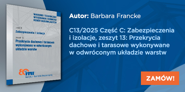 | | | | Przekrycia dachowe i tarasowe wykonywane w odwróconym układzie warstw | | | | | Wykonanie przekryć dachowych i tarasowych w odwróconym układzie warstw stanowi jedno z rozwiązań stosowanych w budownictwie, które pozwala na zwiększenie trwałości i efektywności energetycznej konstrukcji dachowych. Układ ten, w którym izolacja termiczna znajduje się na powierzchni izolacji wodochronnej, wymaga precyzyjnego dobrania materiałów oraz odpowiedniego wykonania wszystkich warstw, aby zapewnić prawidłową funkcjonalność dachu przez cały okres użytkowania. Celem tej publikacji jest przedstawienie warunków technicznych niezbędnych do właściwego wykonania i odbioru tego rodzaju przekryć. W szczególności dokument koncentruje się na wymaganiach dotyczących wyrobów izolacyjnych (termo- i hydroizolacyjnych) oraz zasadach ich stosowania w układach odwróconych. | | | | Przedmiotem opracowania są warunki techniczne wykonania oraz odbioru przekryć dachowych i tarasowych w układzie odwróconym, tj. z warstwą izolacji termicznej ułożoną na powierzchni izolacji wodochronnej. Zastosowanie układu odwróconego nie jest zalecane w przypadku dachów zielonych oraz ogrodów dachowych. | | | | | | | | Publikacja nie zawiera szczegółowych wymagań dotyczących całego przekrycia, a jedynie wytyczne odnoszące się do warstw izolacyjnych – zarówno termicznych, jak i hydroizolacyjnych. Pozostałe warstwy zostały omówione jedynie sygnalnie. | | | | Niniejszy zeszyt warunków technicznych określa wymagania dotyczące: - dokumentacji projektowej,