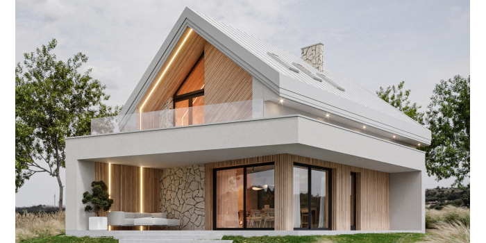 i technologia. Precyzyjnie zaprojektowana bryła wyróżnia się minimalistyczną formą, naturalnymi materiałami oraz wielkoformatowymi przeszkleniami FAKRO INNOVIEW. Tu każdy element